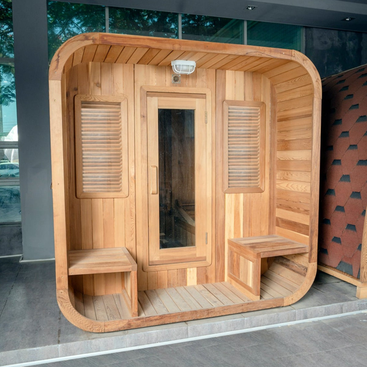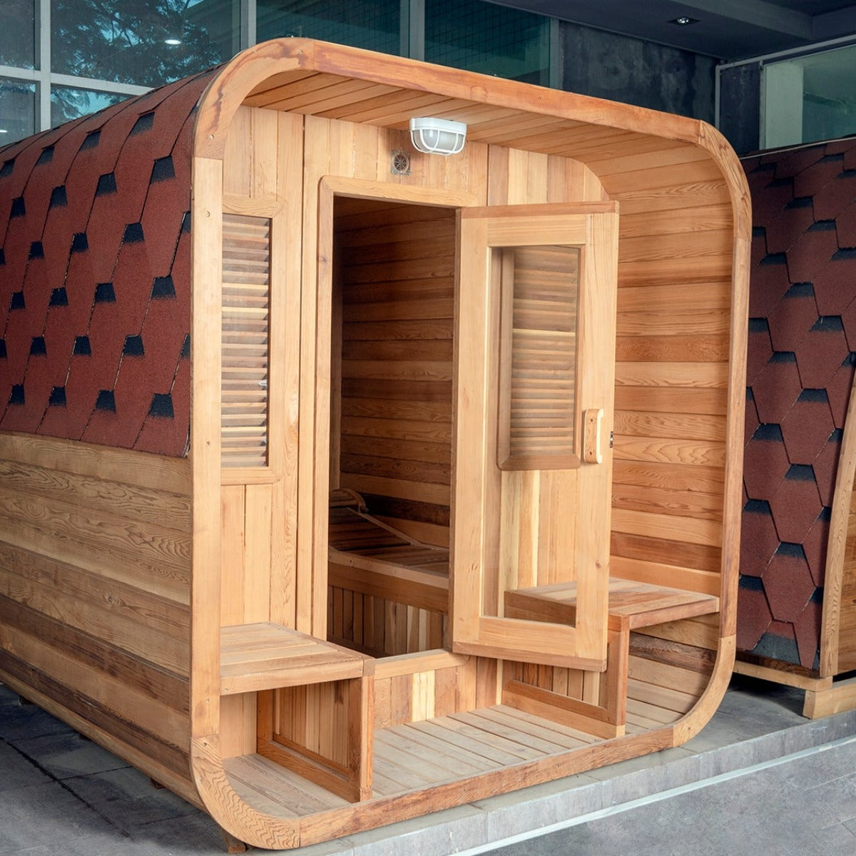 Canadian Red Cedar Wooden Hot Rock Hemlock Outdoor Cube Sauna 2-6 Person with porch