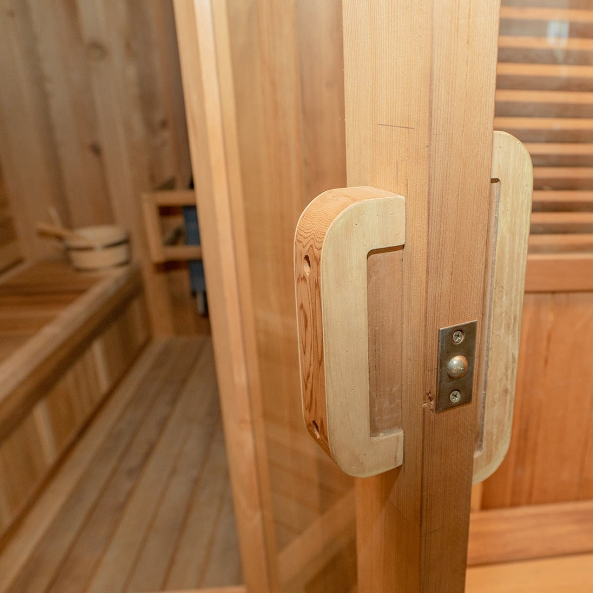 Check the tightness of the sauna doors and windows regularly to ensure that there are no air leaks and prevent heat loss. Lubricate the door hinges and locks regularly to ensure that the doors and windows open and close smoothly.