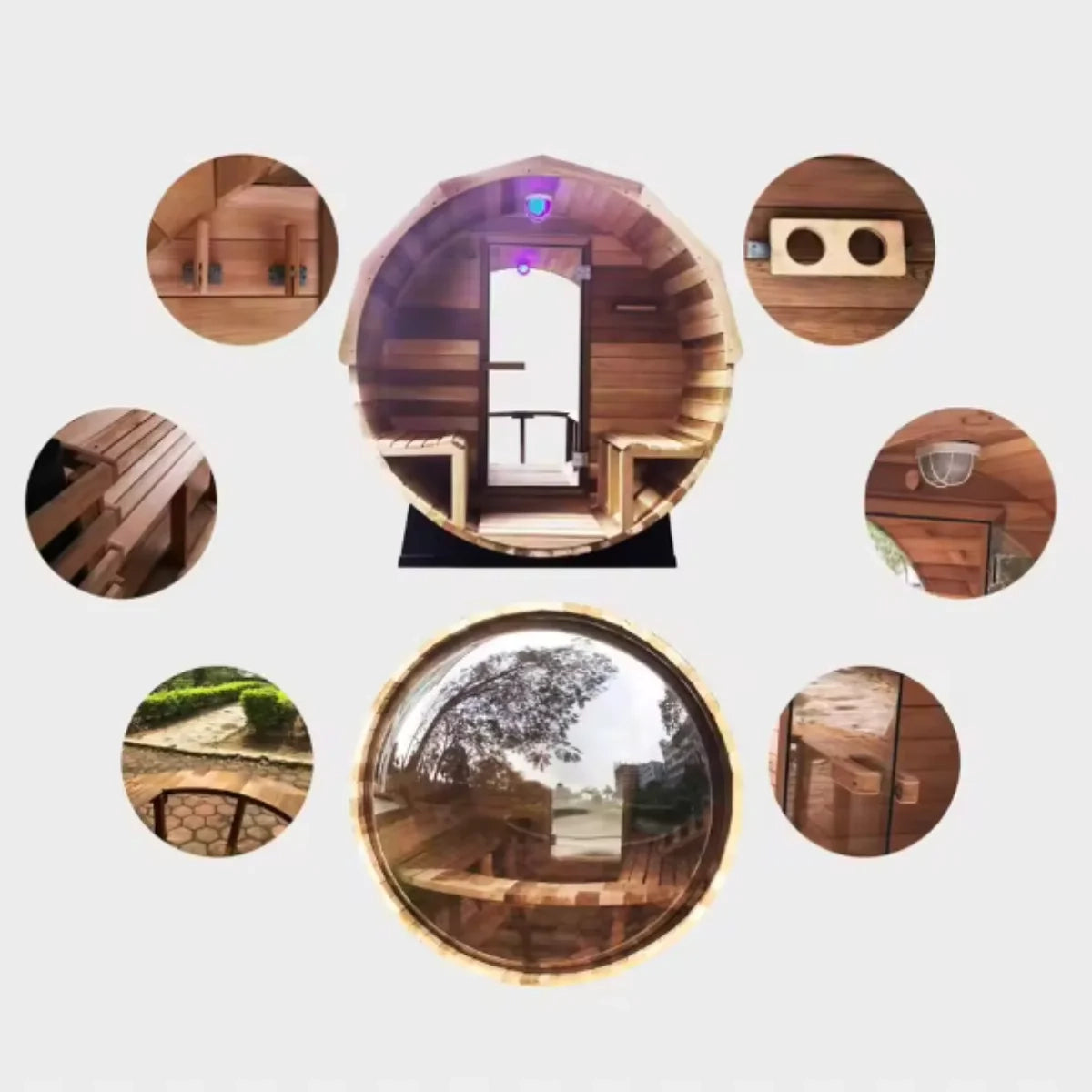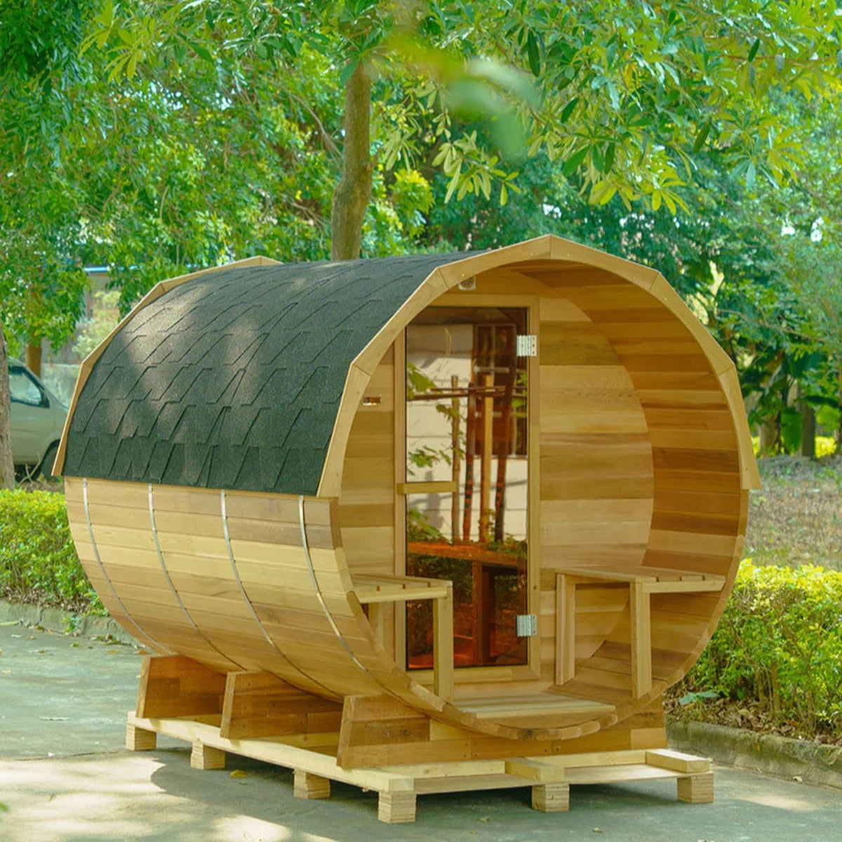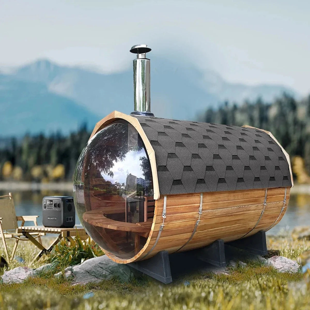 Experience the ultimate blend of luxury and nature, the OasisLux Cedar Barrel Panoramic Sauna allows you to immerse yourself in the beauty of nature while enjoying a sauna.