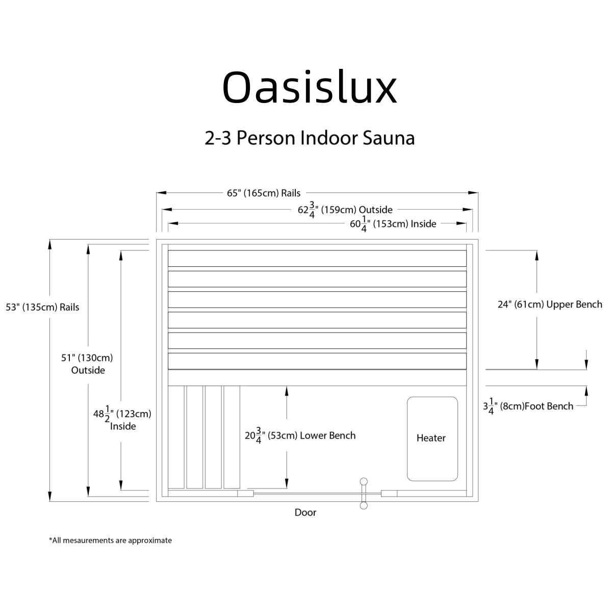 The Oasislux Indoor Cedar Sauna is specifically designed for indoor spaces, making it a perfect addition to your home, gym, or wellness area. Its compact footprint ensures it fits seamlessly into smaller spaces without compromising on comfort or functionality.