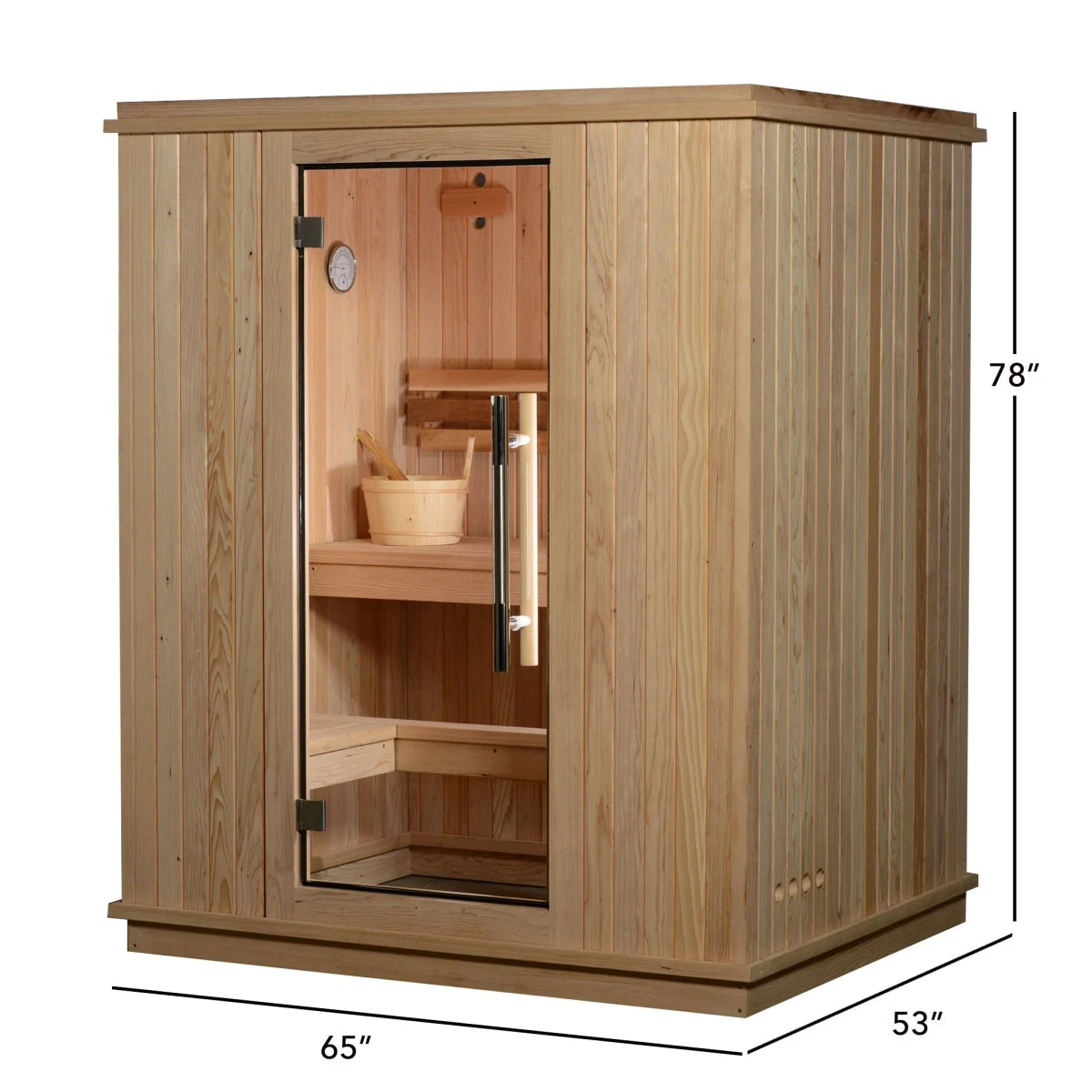 The Oasislux Indoor Cedar Sauna showcases exceptional craftsmanship, with precision-cut tongue-and-groove cedar panels and pre-assembled sections for easy setup. Made from certified Western Red Cedar, it offers durability, natural elegance, and a warm aroma. This handcrafted sauna combines functionality with timeless beauty, enhancing any space with its sleek design and flawless finish.