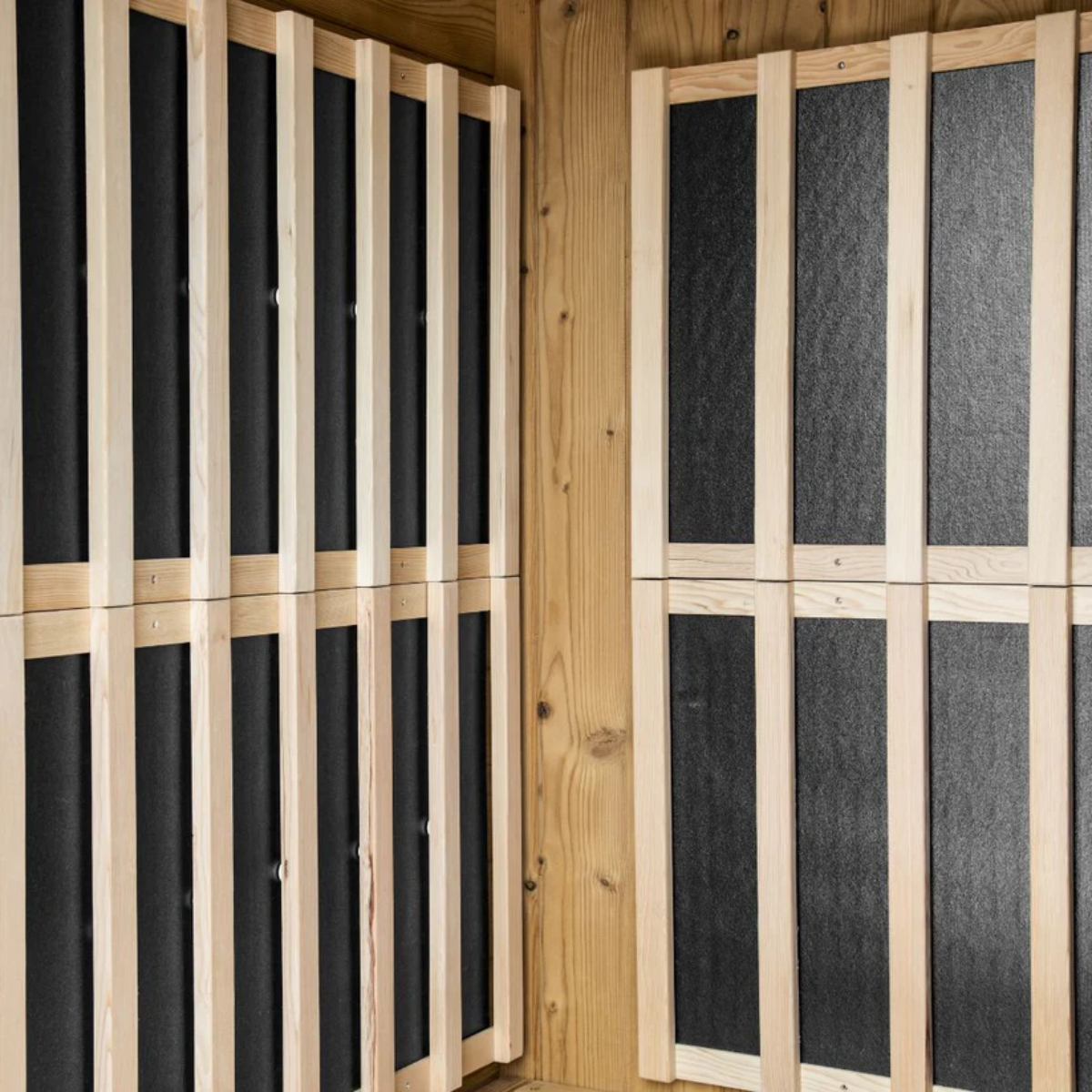 Unlike some manufacturers that use plywood, particle board, or engineered wood composites—which can release formaldehyde and other VOCs over time—our saunas feature tongue-and-groove construction that minimizes glue usage. When adhesives are necessary, we only use water-based wood glues that meet 'food contact safety' standards.