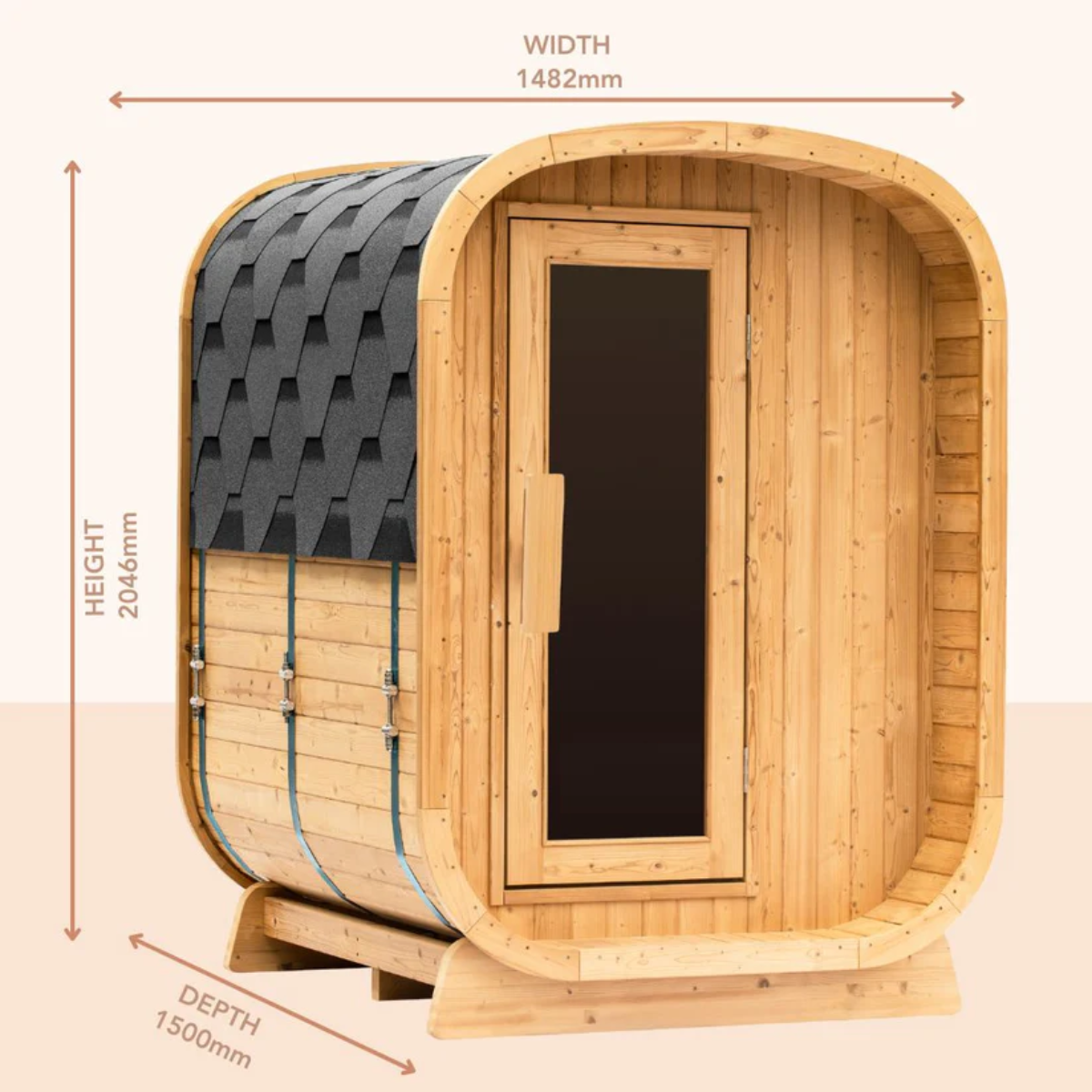 Constructed from luxurious cedar wood, known for its natural durability, moisture resistance, and delightful aroma, this sauna is built to endure the elements. The robust bitumen felt roof and 8mm tempered glass door enhance its aesthetic appeal and longevity.